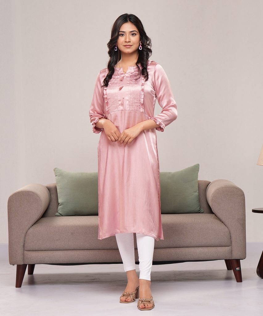 Winner Style Trendy & Stylish Lavender Tensile Pleat and Frill Work Kurti for Women by Winner Style
